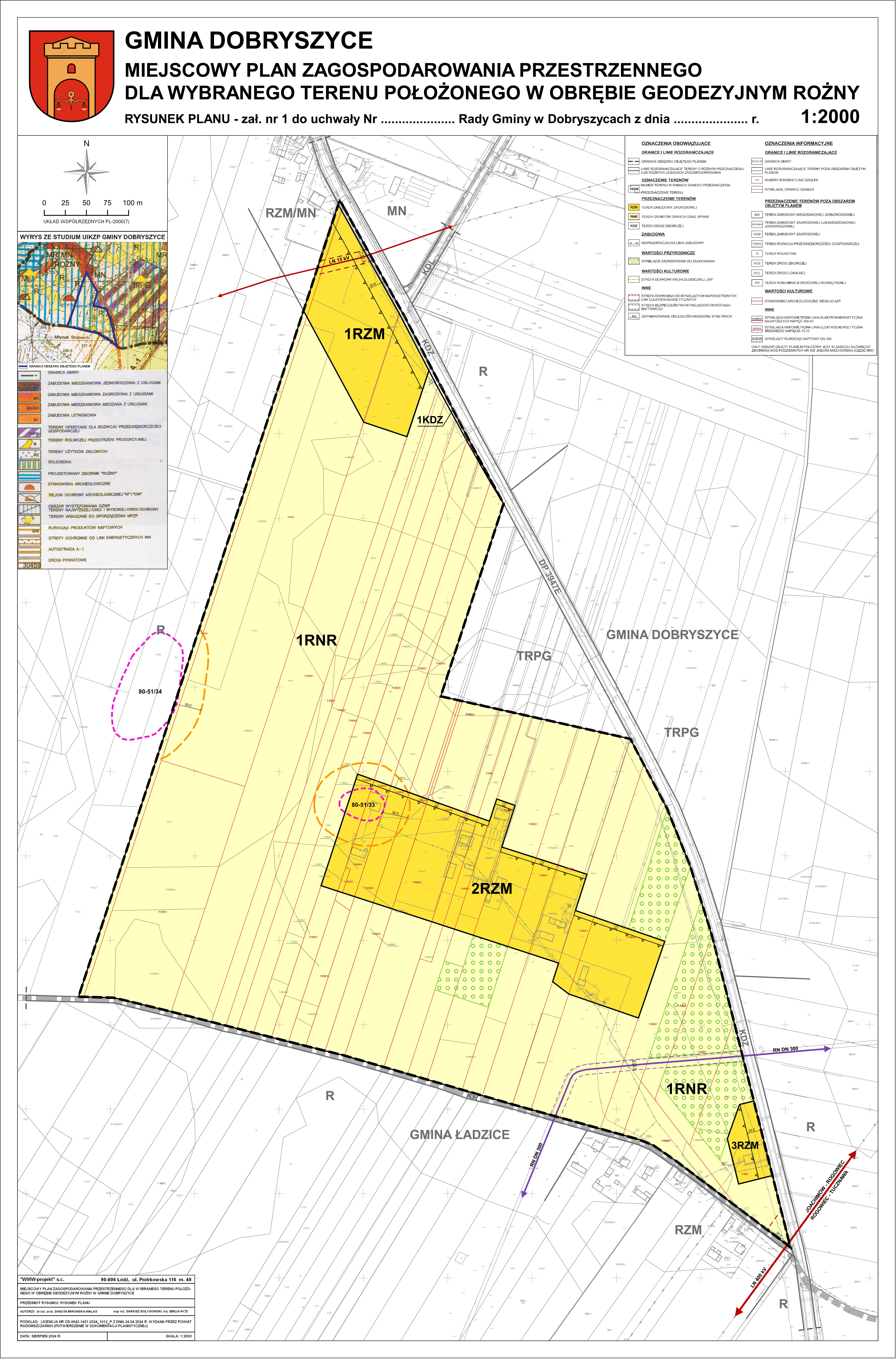 - Tekst miejscowego planu zagospodarowania przestrzennego dla wybranego terenu położonego w obrębie geodezyjnym Rożny